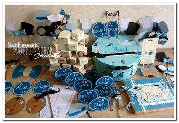 Bonjour, pour compléter avec sa décoration de Baptême, que vous allez rapidement découvrir, voici des confettis moustaches, pour Sandro. * Couleurs :  turquoise, vert d’eau, & gris Fil conducteur : moulins à vent & moustaches ♥ Le mot de Julie : « bonjour, je suis très contente, vous faites vraiment du bon travail » * Retrouvez l’ensemble des créations… Lire la suite Papeterie Candy Bar – confettis – Sandro